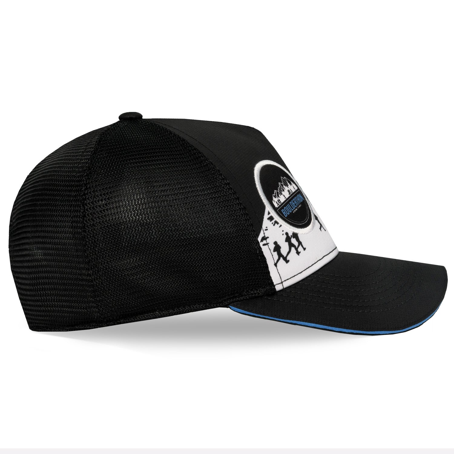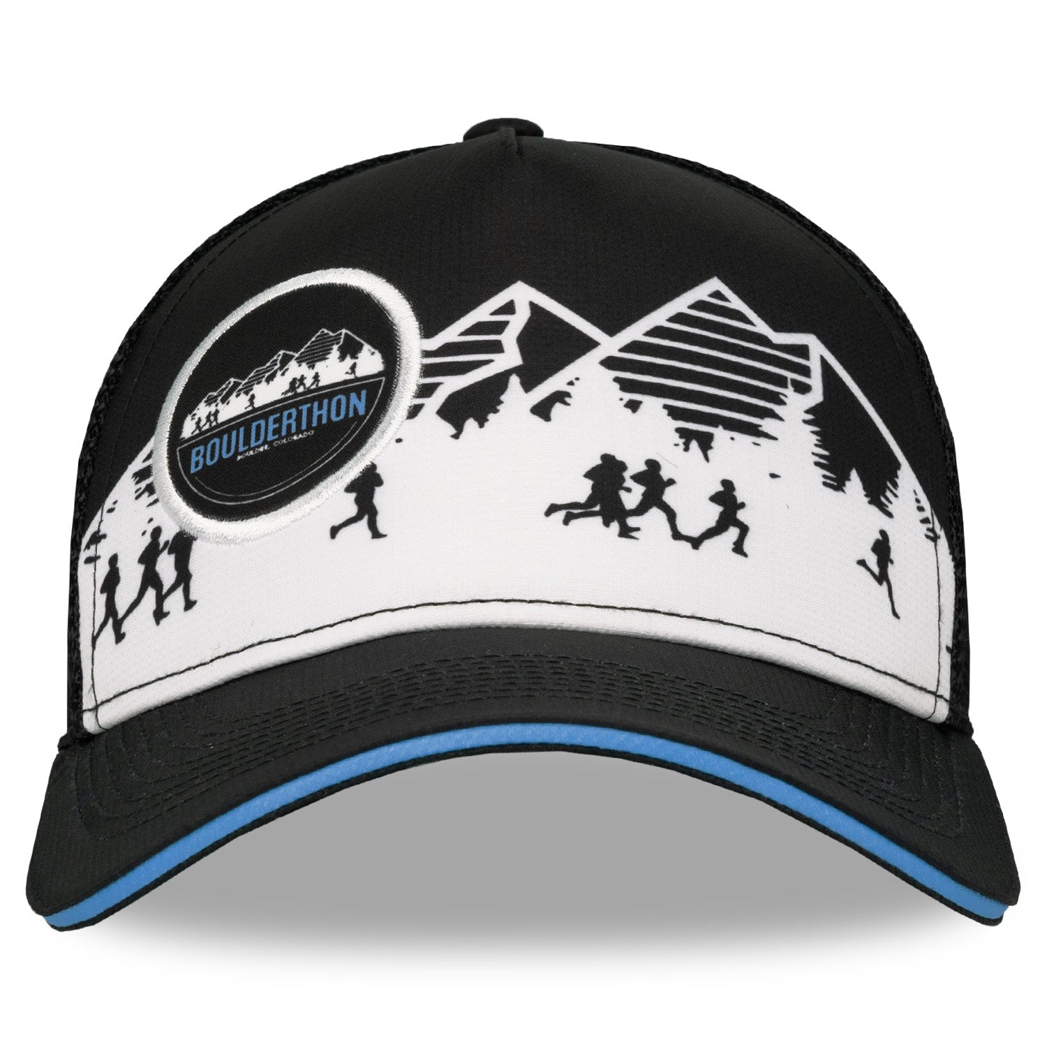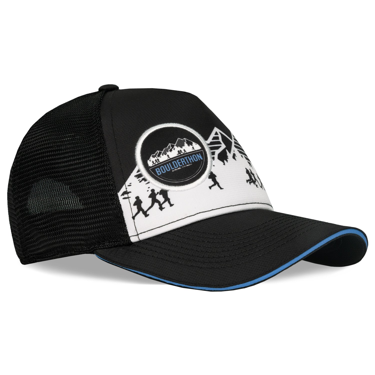 Embrace the thrill of the climb with the Boulderthon Logo Mountain Trucker. This bold 5 panel trucker showcases the official headwear of the Boulderthon event. The Eventure™ Terry Sweatband provides comfort while the Snap Back closure with ponytail opening ensures a secure fit. Dare to conquer any terrain and reach new heights!